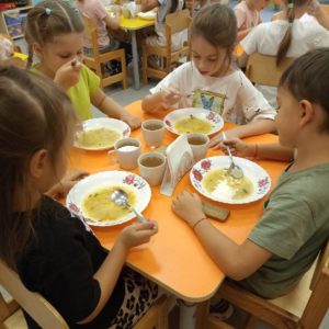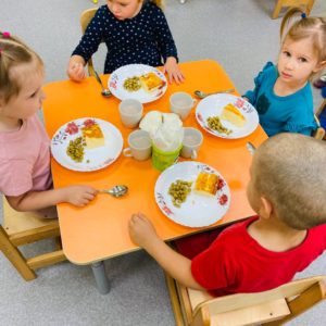 Дети получают 4-х разовое питание по десятидневному меню, разработанному Управлением социального питания Санкт-Петербурга.