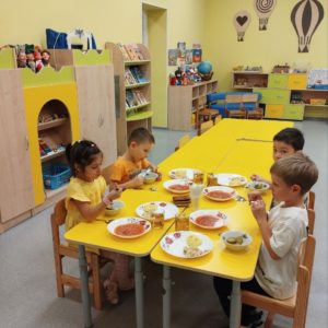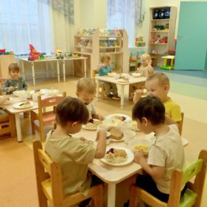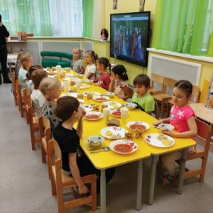 Организация питания в ГБДОУ соответствует санитарно-эпидемиологическим правилам и нормативам. Питание организовано в соответствии с примерным десятидневным меню, составленным с учетом рекомендуемых среднесуточных норм питания для возрастной категорий: дети от 1 до 7 лет.