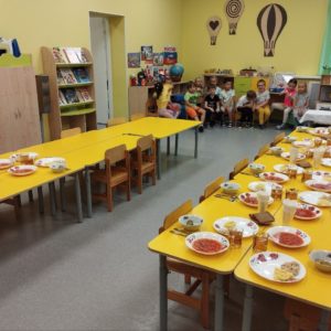 Питание детей организовано в соответствии с действующими «Санитарно-эпидемиологическими требованиями к устройству, содержанию и организации режима работы в дошкольных организациях”.